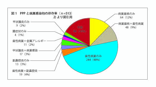 さらに、PPPと歯性病巣との関連は、すべて歯性病巣治療によるPPPの改善経過でしか確認できていない7)し、薬物療法やその他の要素を排除したクリアーな研究も現在まで存在しない。加えて、PPPの病態形成や病態の維持、症状の悪化に歯性病巣がどのように関与しているかを直接検証している論文は今の時点では認められない5)。